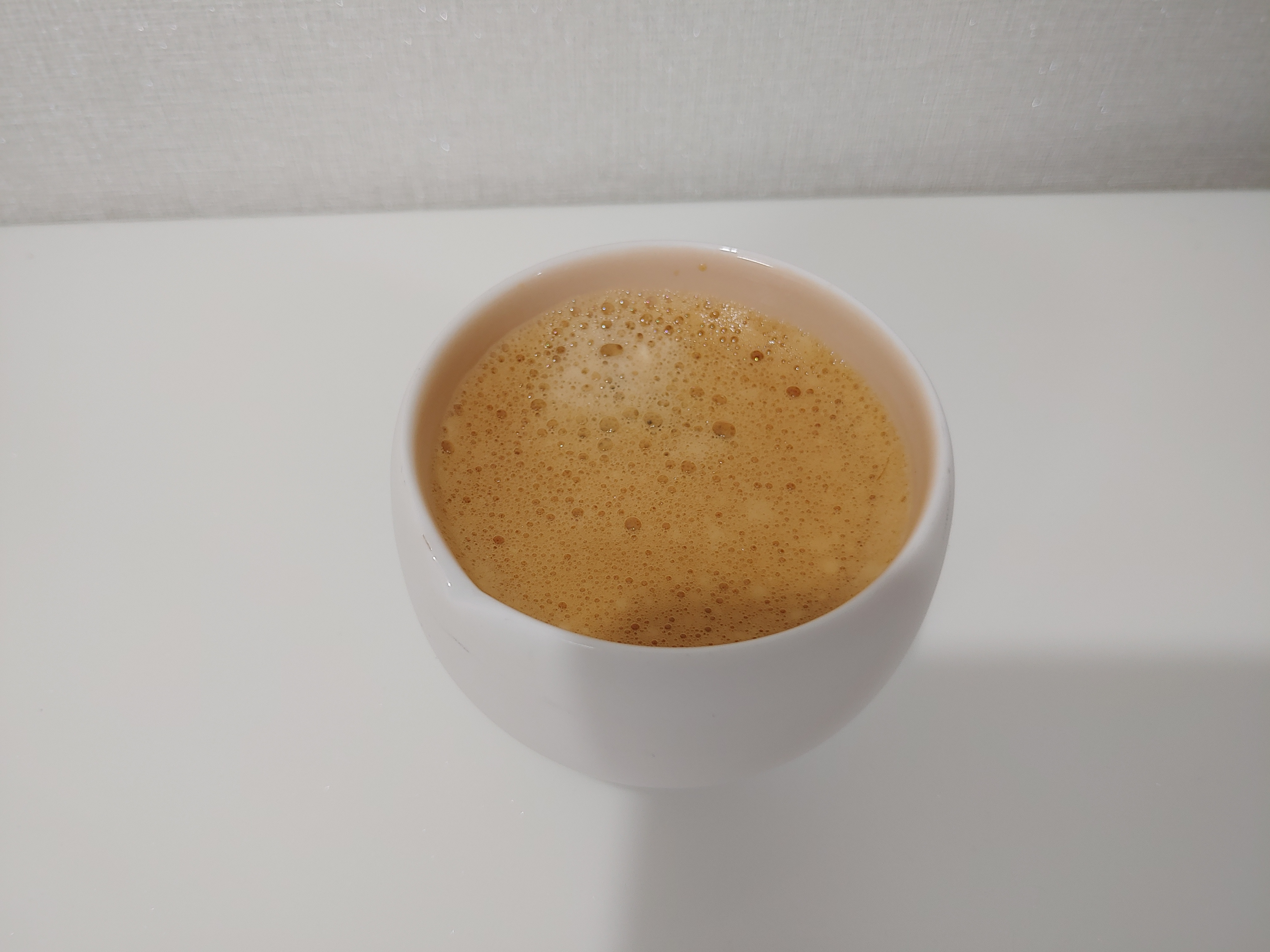 캐러멜향 크렘 브륄레 커피를 에스프레소로 내려봤습니다. 사진상으로는 크레마가 좀 있는것처럼 보였지만, 실제로는 크레마가 만족스럽게 나오진 않았습니다. 그럼에도 크레마 색상은 '캐러멜'이라는 제품과 잘 어울리는 황금빛으로 나와서 시각적으로는 괜찮았습니다.